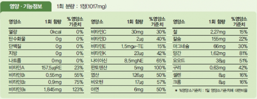 이 성분 분석을 통해 면역 건강부터 피부노화 방지까지 다양한 신체 기능을 지원하는 데 함께 작용하는 필수 비타민과 미네랄의 사려 깊은 혼합되어 있음이 밝혀졌습니다.