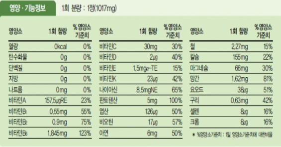 태블릿 형태의 편리함 덕분에 일상생활에 쉽게 포함시킬 수 있어 신체가 원하는 필수 영양소를 섭취할 수 있습니다.